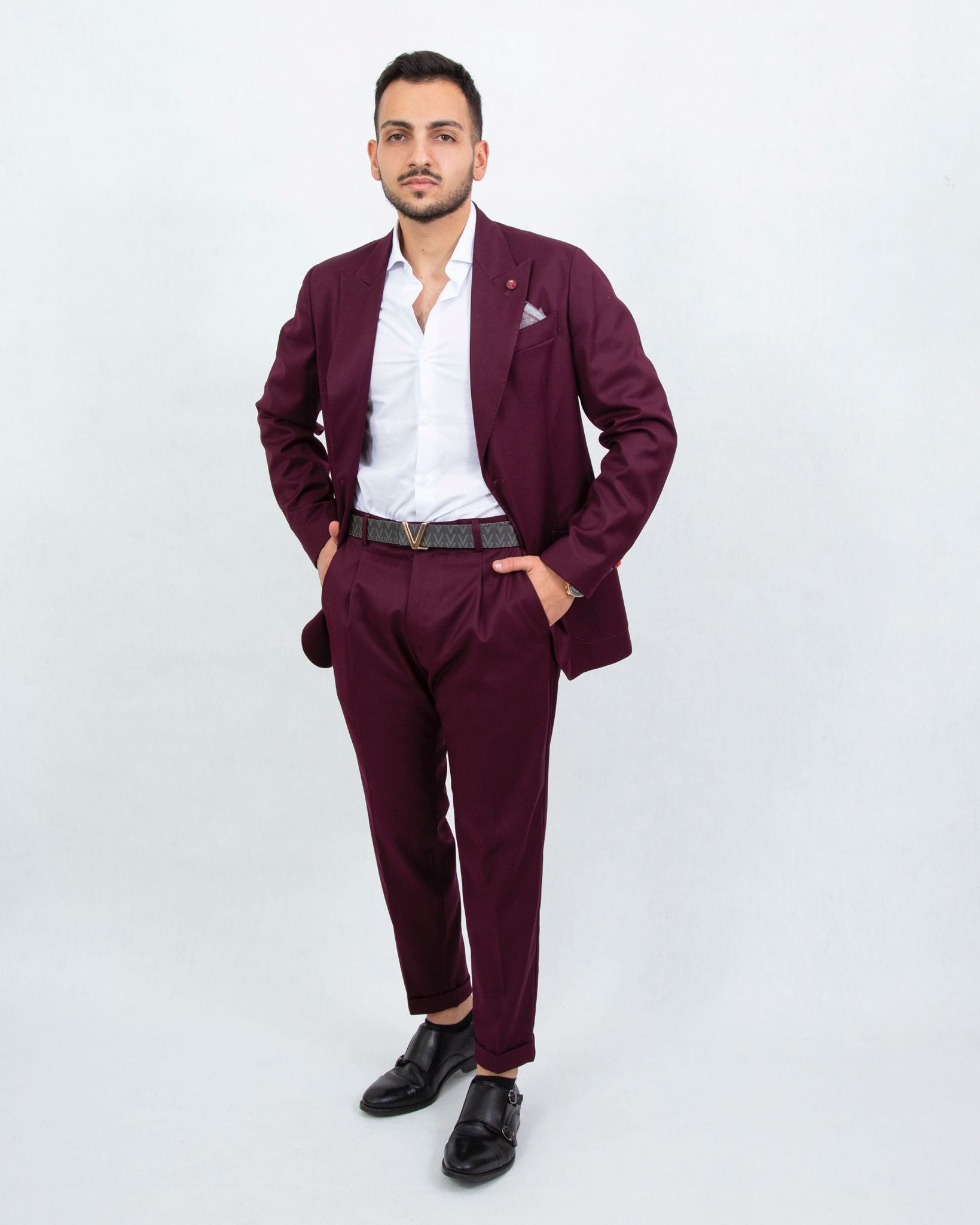 L'abito Royale in bordeaux unisce stile contemporaneo e massima comodità.