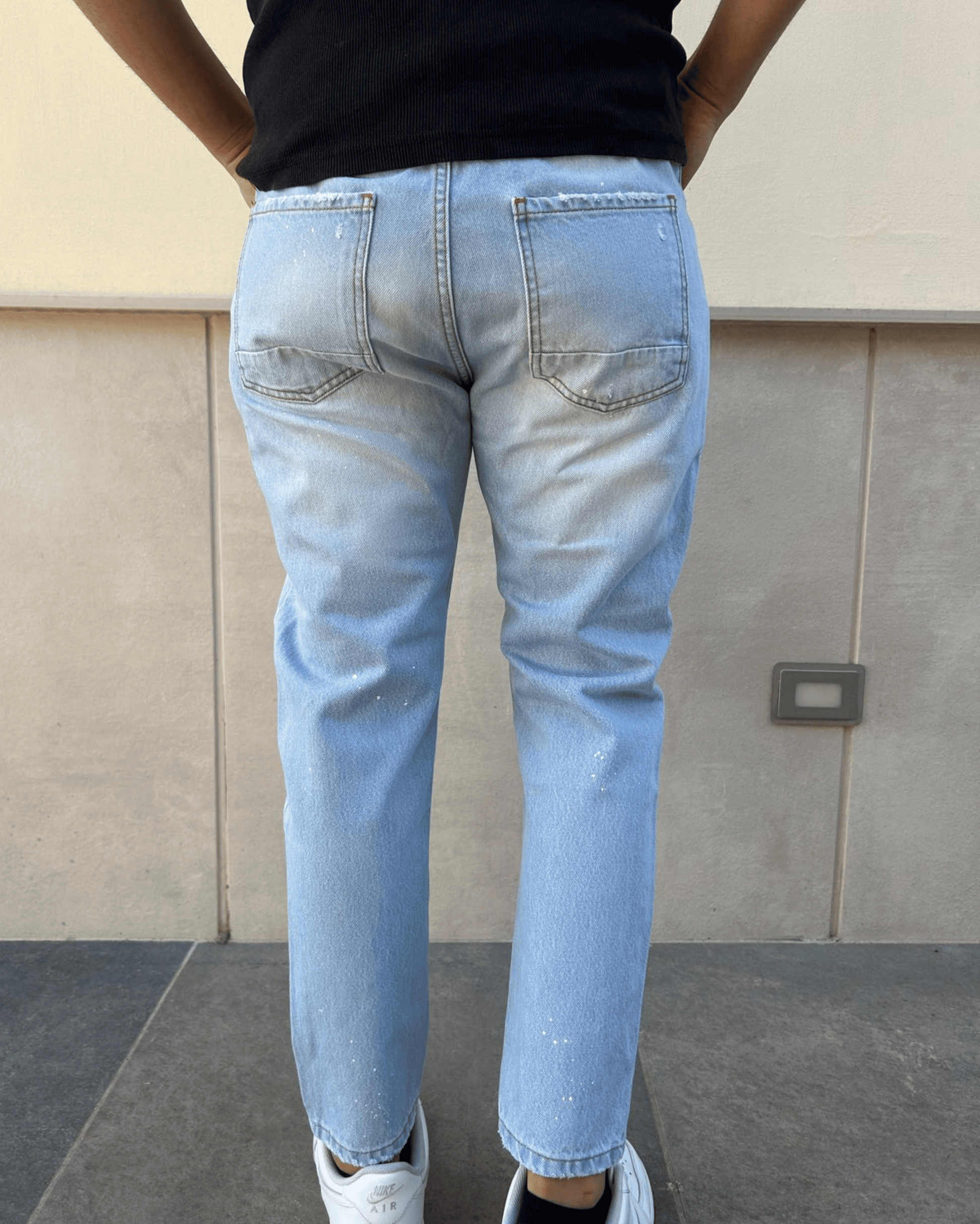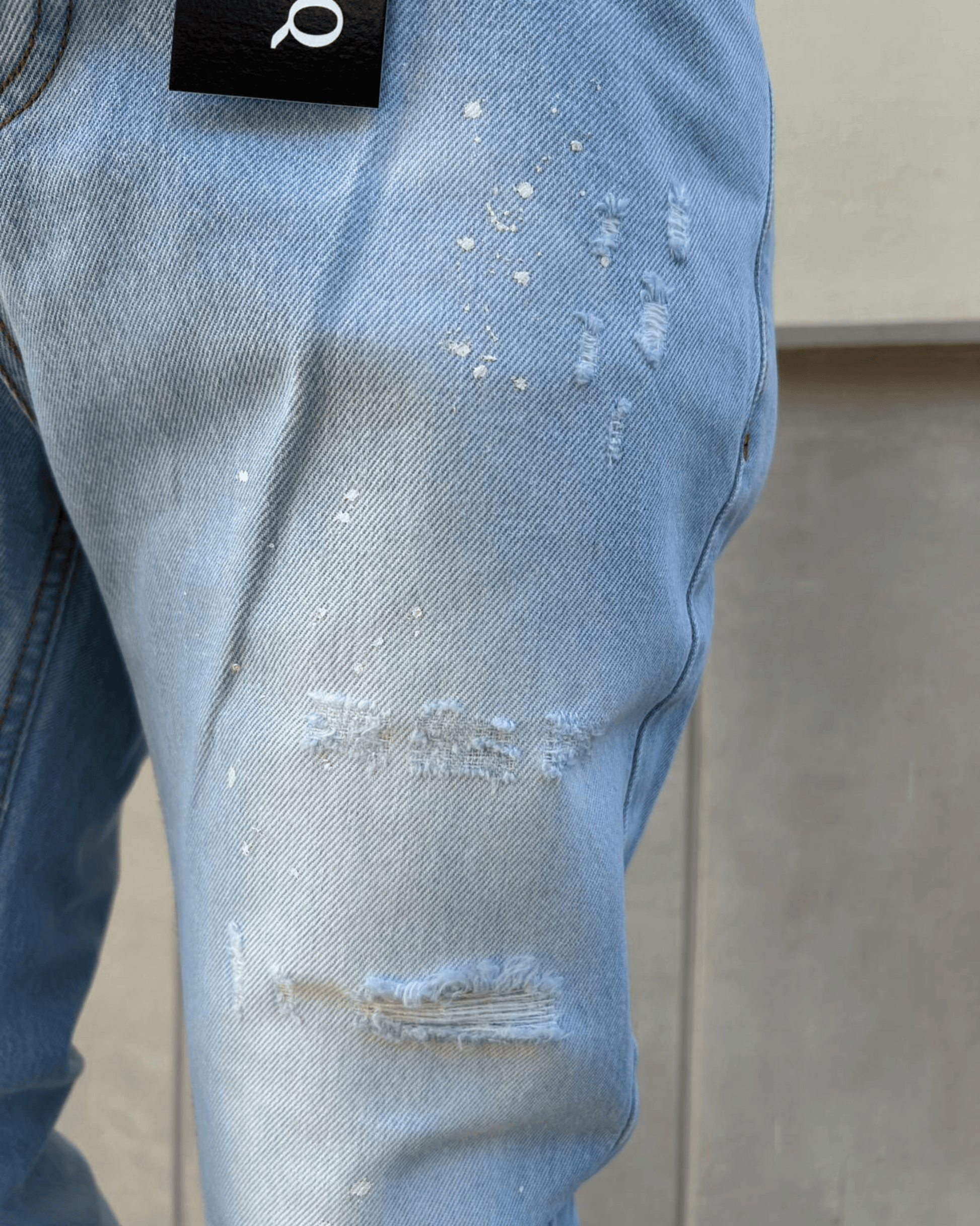 I jeans Seattle non passano inosservati. Con il loro lavaggio chiaro, rotture strategiche, abrasioni, schiariture e schizzi di pittura a contrasto, incarnano lo spirito di chi vive la strada come una passerella e il denim come una tela.