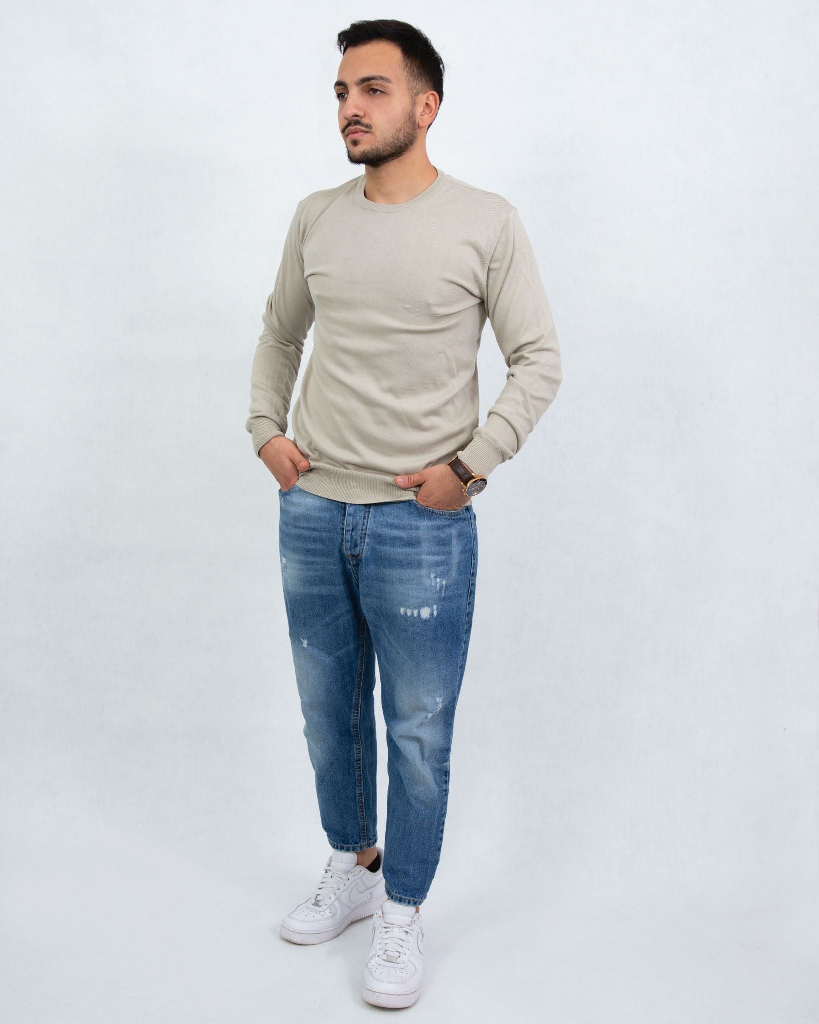 Aggiungi un tocco di classe e raffinatezza al tuo look con questa maglia a maniche lunghe. Realizzata in 100% cotone di alta qualità, offre un comfort eccezionale e una vestibilità impeccabile. Il colore piuma , neutro ed elegante, la rende perfetta per abbinamenti versatili, dal casual al sofisticato