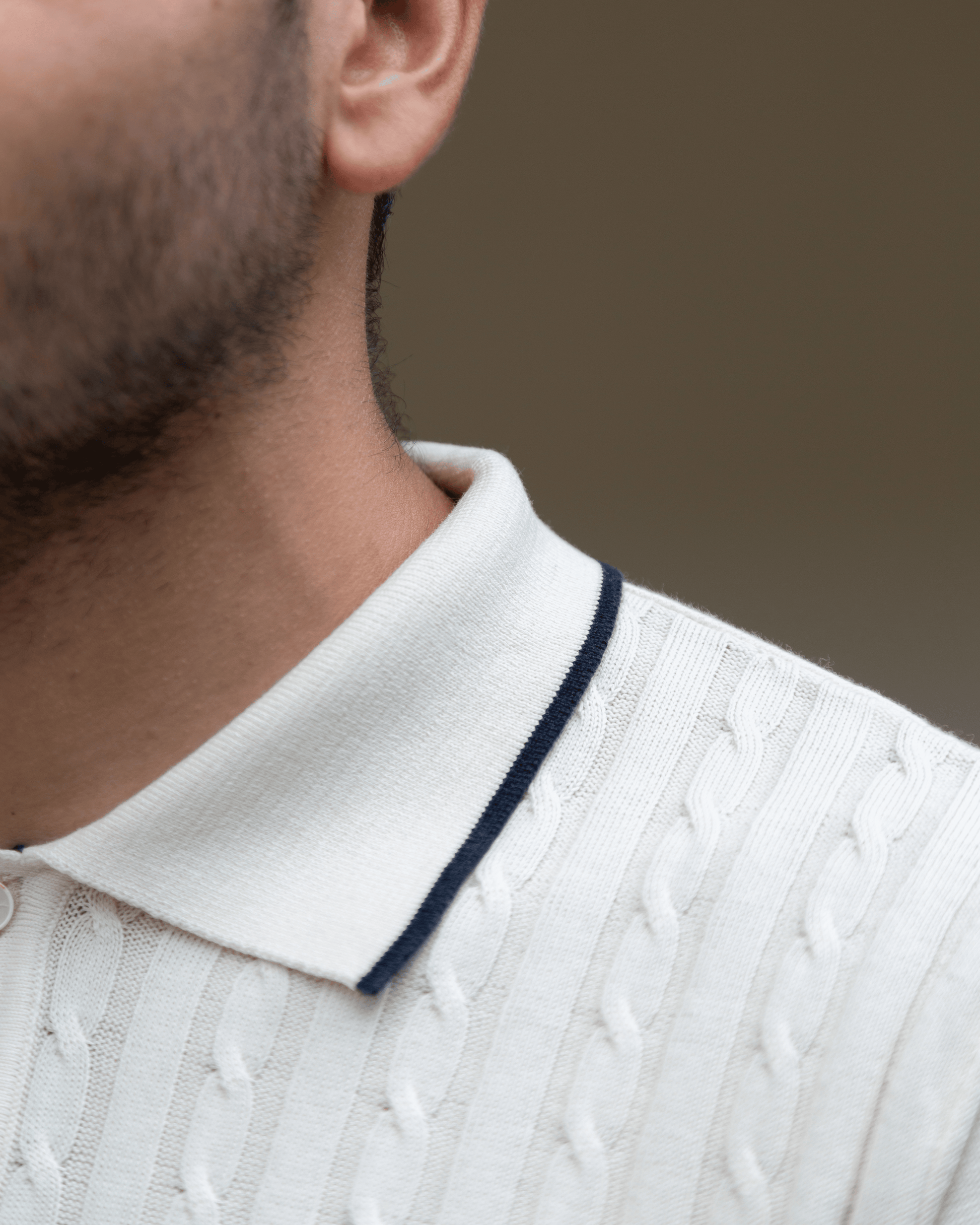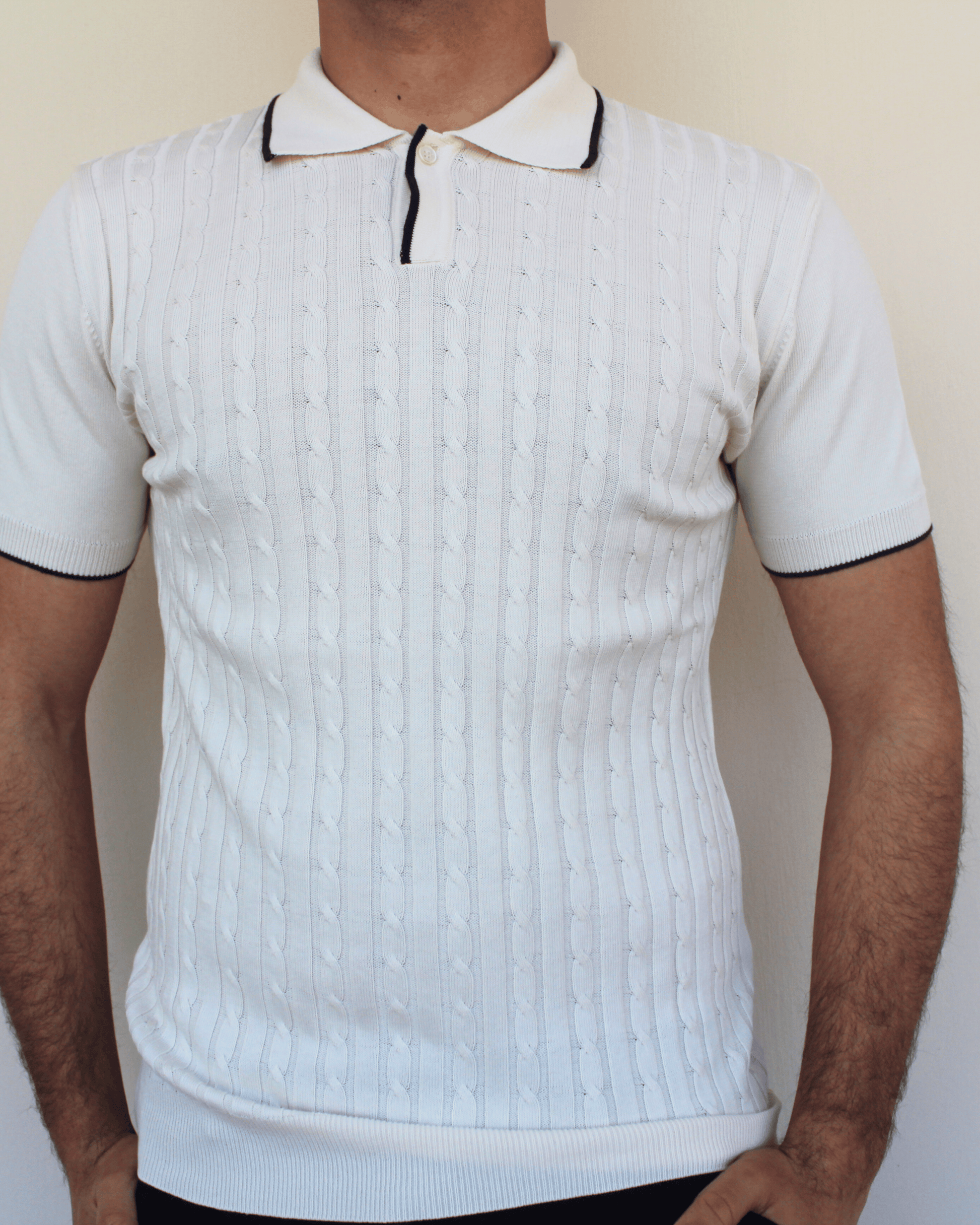 Esalta il tuo stile con questa polo raffinata e moderna, perfetta per ogni occasione. Realizzata in 100% cotone di alta qualità, offre un comfort ottimale e una vestibilità impeccabile. Il colore ecru aggiunge un tocco di eleganza senza tempo, mentre la lavorazione a treccia dona profondità e carattere al capo.