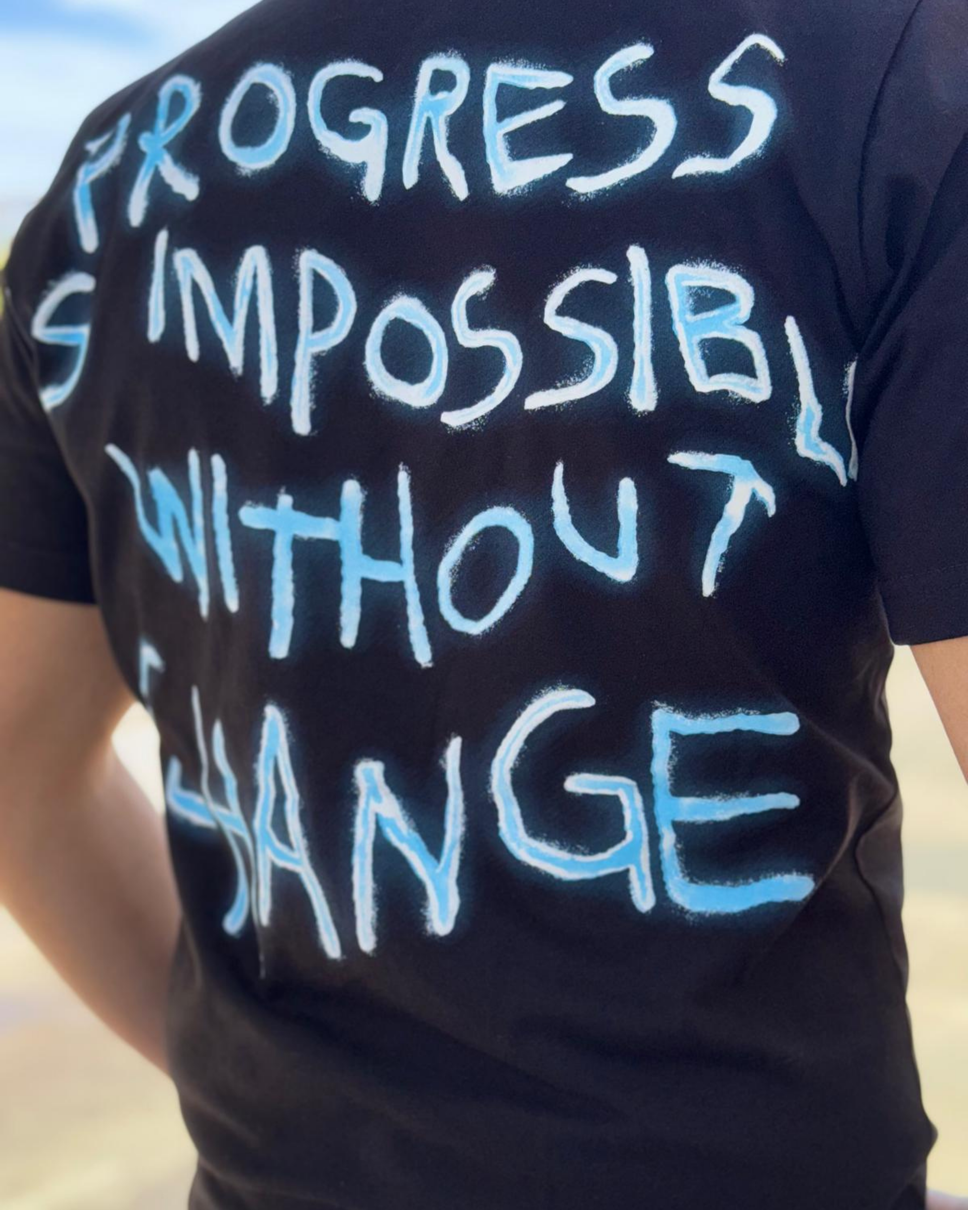 Questa t-shirt nera è un must-have per chi cerca un look semplice ma con un tocco di carattere. Le stampe frontale e retro sono il punto focale del design, creando un contrasto interessante con il fondo nero. Realizzata in cotone morbido e traspirante, è perfetta per essere indossata sia in contesti casual che per aggiungere personalità a un outfit più ricercato.